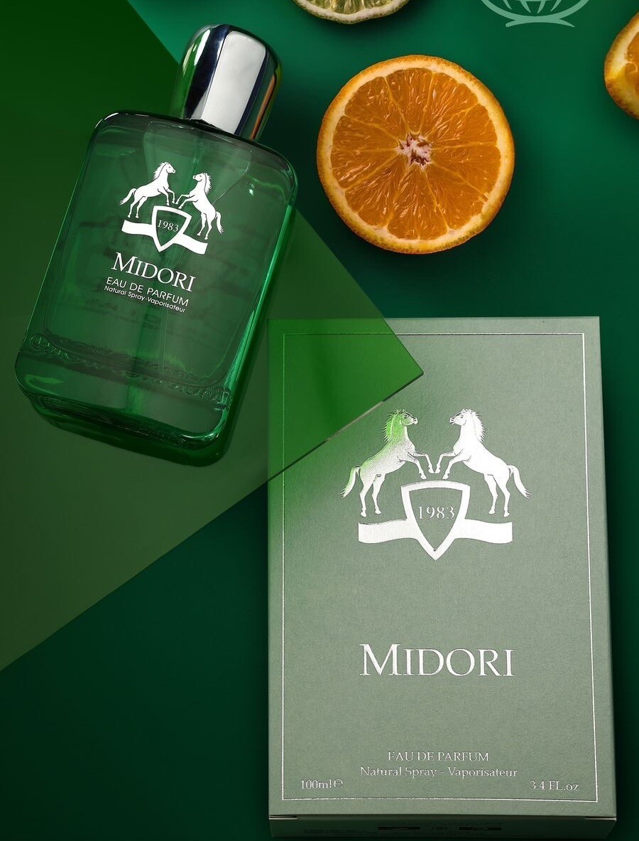 Midori de Fragrance World es una fragancia de la familia olfativa Amaderada Aromática para Hombres y Mujeres. Las Notas de Salida son manzana verde, bergamota, mandarina y naranja; las Notas de Corazón son petit grain, cedro, cachemira y violeta; las Notas de Fondo son almizcle, musgo de roble y Amberwood.