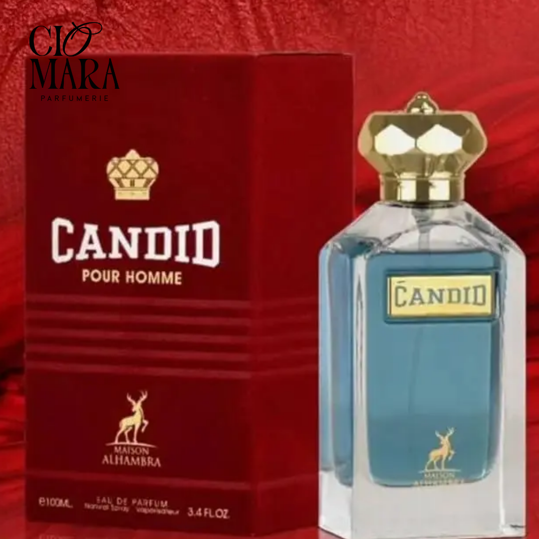 Candid Pour Homme de Maison Alhambra es una fragancia de la familia olfativa Oriental Fougère para Hombres. Esta fragrancia es nueva. Candid Pour Homme se lanzó en 2024. Las Notas de Salida son mandarina y esclarea; las Notas de Corazón son caramelo y haba tonka; la Nota de Fondo es vetiver.