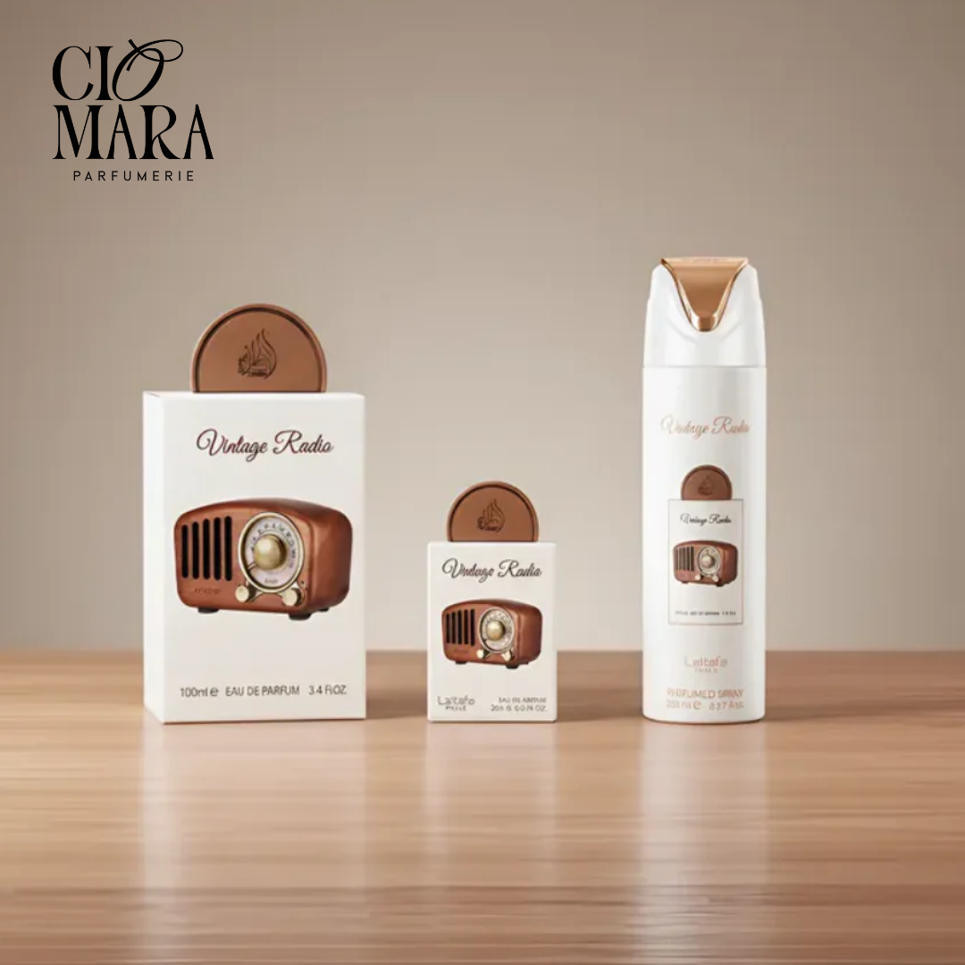 Vintage Radio de Lattafa Pride es una fragancia carismática y suave que combina frescura aromática con madera ahumada y especias profundas, evocando una interpretación moderna de la masculinidad clásica. Comienza con una vibrante mezcla de lavanda, salvia y bergamota cítrica, creando una entrada limpia y energizante. El corazón presenta un tono más oscuro y rico con ciruela, palo santo y pimienta negra, que aporta una calidez ahumada y una profundidad especiada y resinosa.