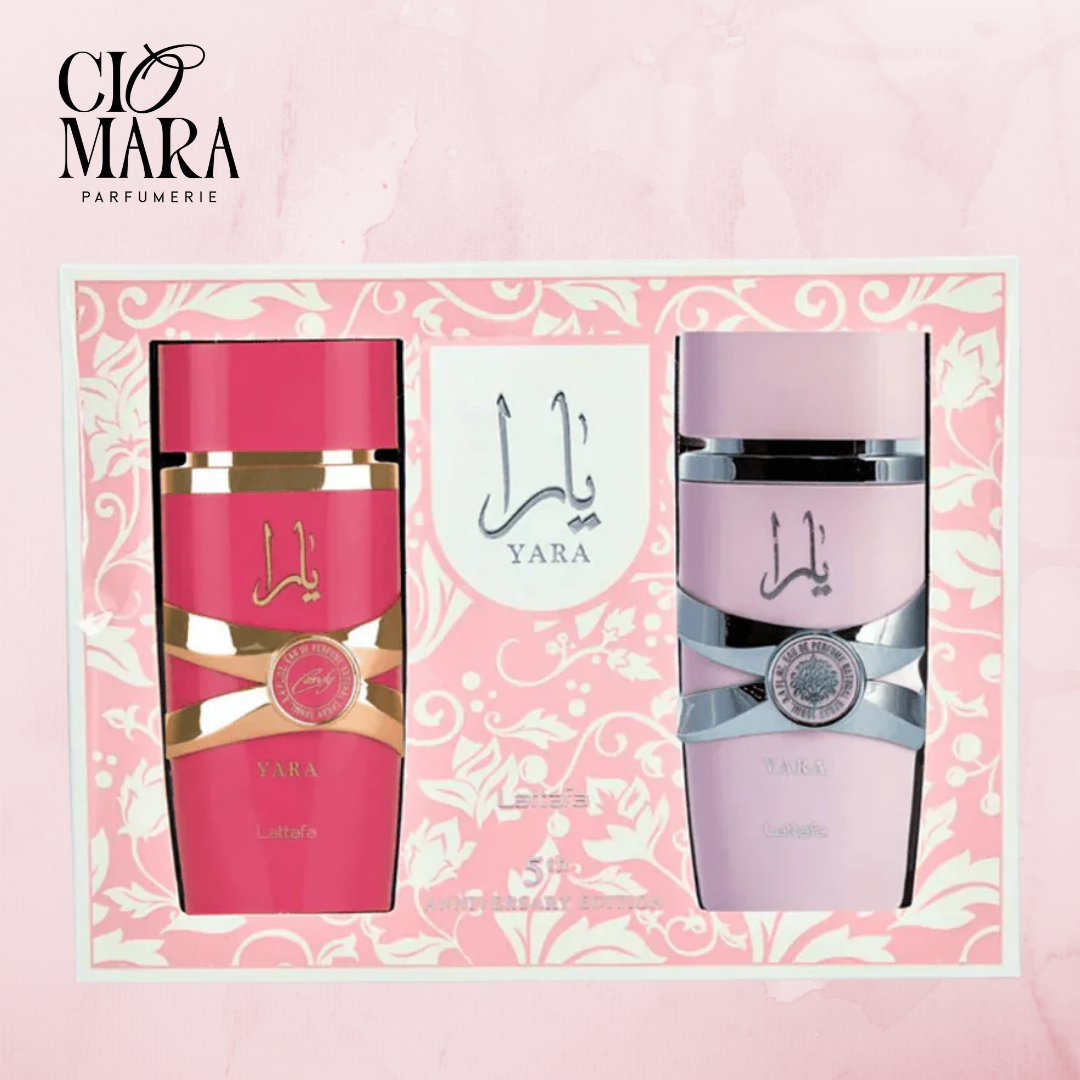 Set Yara & Yara Candy de Lattafa, : un dúo de dos EDP de 100 ml que equilibra la cremosidad tropical y vainillada de Yara (2020) con la chispa frutal y golosa de Yara Candy (2024). Un binomio floral, frutal y gourmand con matices envolventes, perfecto para alternar estilos según el momento o regalar sofisticación con un toque de dulzura moderna.